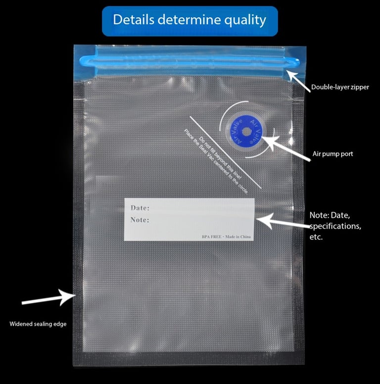 2. Fácil de usar repetidamente: El diseño de cierre con cremallera permite una apertura y sellado sencillos, facilitando múltiples accesos y almacenamiento. Es especialmente adecuado para entornos de refrigerador/congelador, manteniendo la comida fresca y reduciendo el desperdicio.